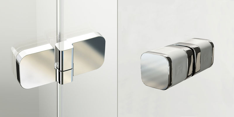 Петли не имеют выступающих частей изнутри душевого угла, что облегчает его обслуживание. Подъемный механизм петель обеспечивает автоматический подъём и опускание двери при открытии и закрытии. Чистый металл и массивное исполнение эргономичной ручки подчеркивают величественное впечатление от всего душевого уголка.