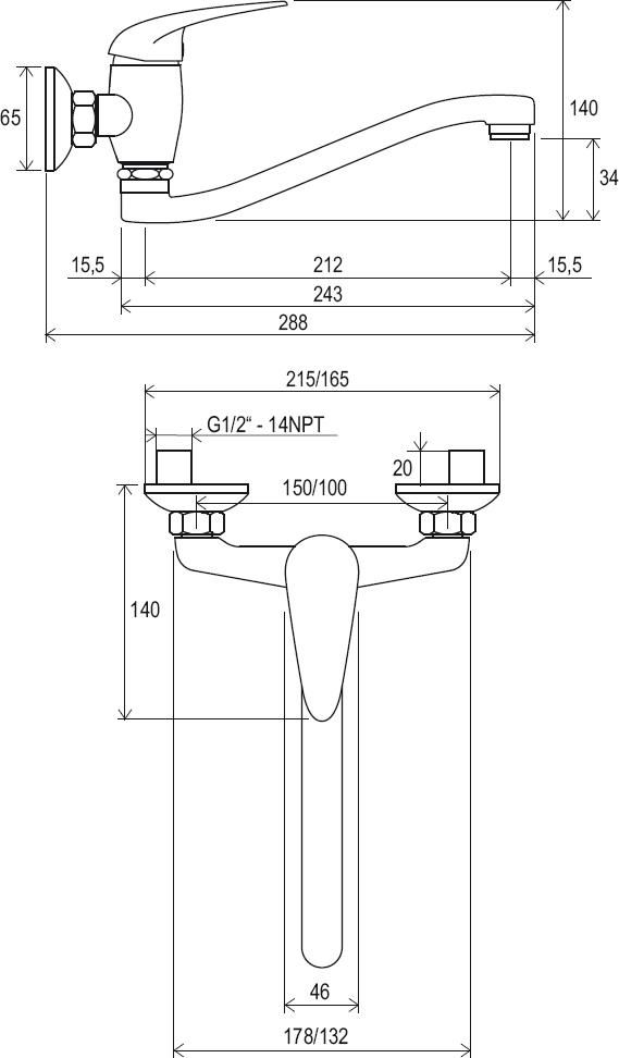 Межосевой размер 150 мм., устанавливается над умывальниками.