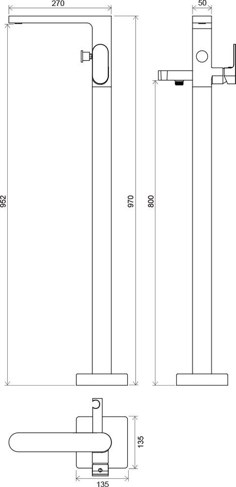 Устанавливается на пол для отдельностоящих ванн.