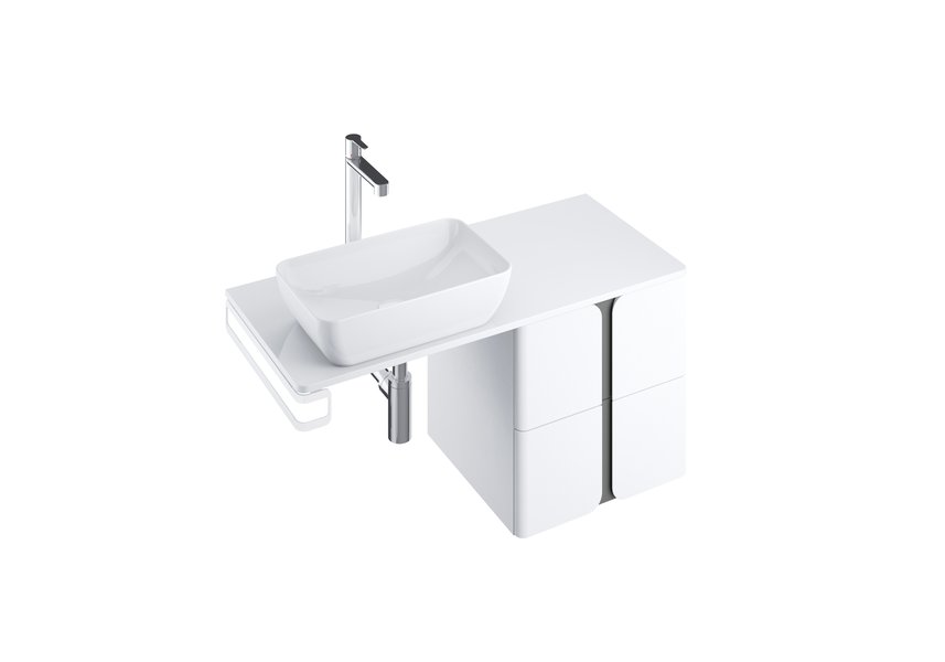 Аксессуары: умывальник Balance 600, сифон с фиксированным сливом, столешница Balance 1200, консоль к столешнице Balance/Comfort 1200, полотенцедержатель Balance, умывальник для столешницы (например Uni, Uni Slim)Элементом дизайна подвесной тумбы являются внушительные фрезерованные вырезы на передних поверхностях, благодаря которым легко пользоваться двумя выдвижными ящиками, оснащенных механизмом с доводчиками.