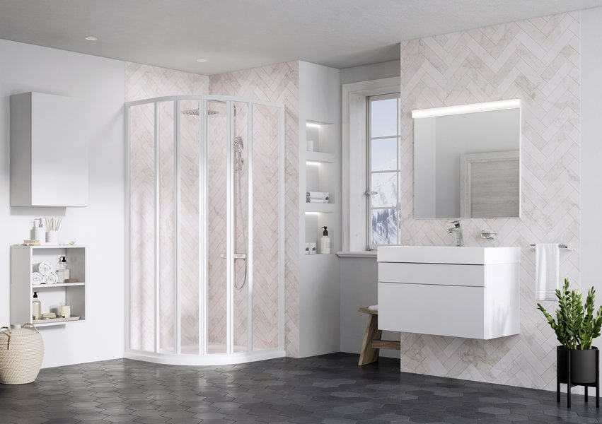 Самый выгодный по цене полукруглый душевой уголок из ассортимента RAVAK. Благодаря прямым витражам небольшой ширины, изделие обладает повышенной прочностью.