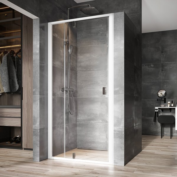 Изделие состоит из одной прямой неподвижной части и одной прямой поворотной части, образующей дверь. Перевернув изделие на 180°, получите левый/правый варианты входа. Устанавливается в облицованную кафелем нишу в ванной комнате или в угол при комбинации с неподвижной стенкой PPS на поддоны RAVAK ANETA, ANGELA, PERSEUS, PERSEUS PRO, PERSEUS PRO FLAT, PERSEUS PRO CHROME, GIGANT PRO, GIGANT PRO FLAT, GIGANT PRO CHROME или непосредственно на пол со встроенным душевым каналом. Комбинация с двумя неподвижными стенками NPSS позволяет создать „П“-образный душевой уголок. С помощью регулирующих профилей NNPS можно увеличить ширину изделия до 4 см с каждой стороны.