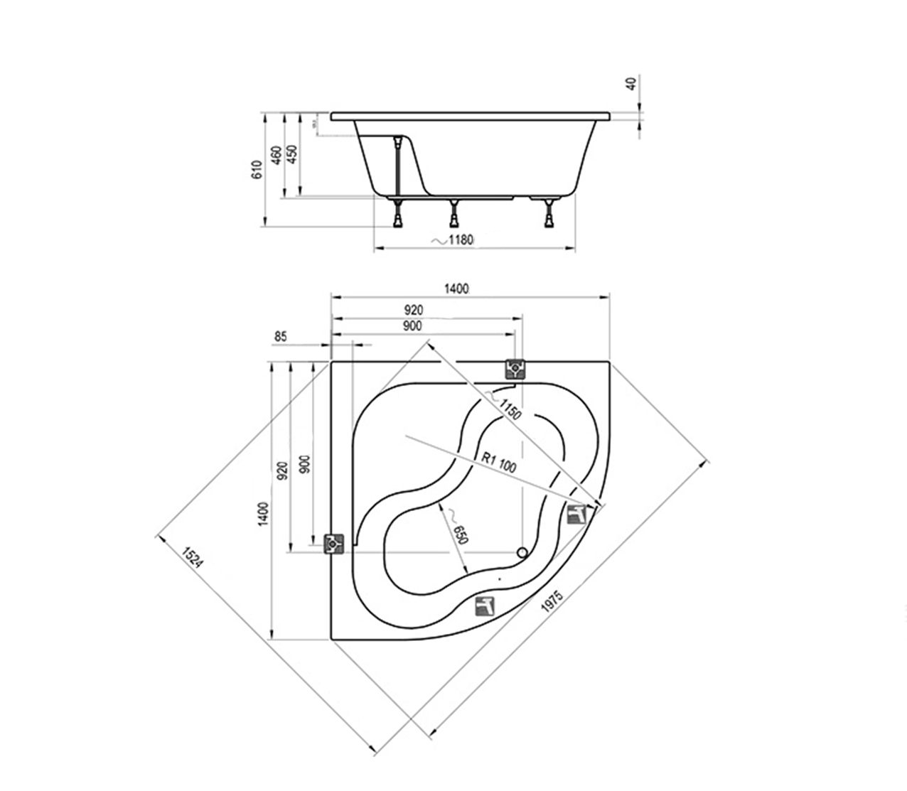 | Размер ванны | 140 х 140 |